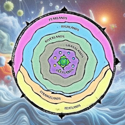Eight Principal Realms â We journey in the octagon of manifest awareness, cross the life-cycle stations, touch upon the energetic centers of existence. The realms of Mooland fluff out the very essences of human life.