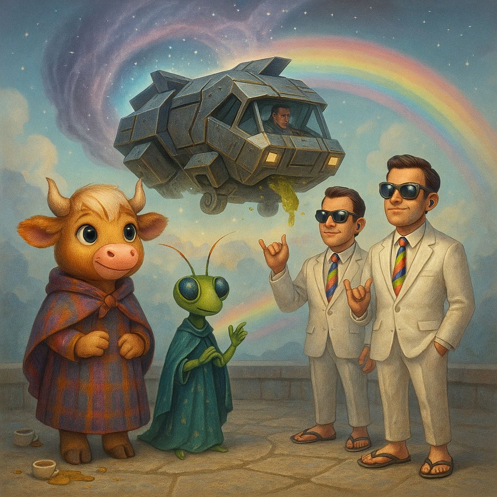 Our budding pilot novella for a broader audience! Agents Nix and Ray drop into the Mooland dimension with a stash of deep inquiries. Izzy and Manny join them for the ride of their lives. β "How's it going Mooland. We come from a planet called Earth. Earth is in the Human Dimension. We are exploring existential limits."